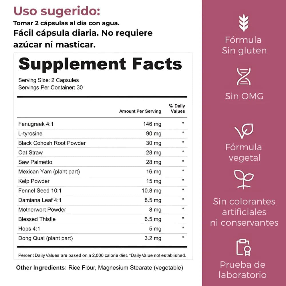 Ha sido un gran apoyo en esta etapa de mi vida, me siento equilibrada y con mejor ánimo. ¡Excelente suplemento!